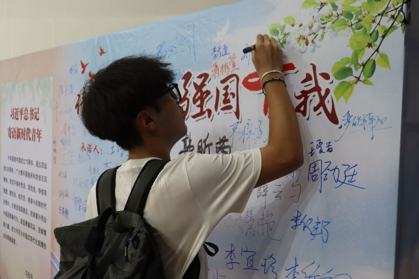 冰球突破mg正规官网深知思想政治教育的重要性,并于迎新之际启动了“思想启航”计划。一幅大型的《习近平总书记寄语新时代青年》展板放置在冰球突破mg正规官网迎新点最醒目的位置,履行完报到手续的新生纷纷驻足观看,《寄语》中“坚定不移听党话、跟党走,争做有理想、敢担当、 能吃苦、肯奋斗的新时代好青年”“奋力书写为中国式现代化挺膺担当的青春篇章”等关键词、句不时被新生大声朗诵出来。新生们纷纷在《寄语》旁的“请党放心,强国有我”签名板上郑重地签下自己的名字,在大学第一天许下青春报国的无悔诺言。