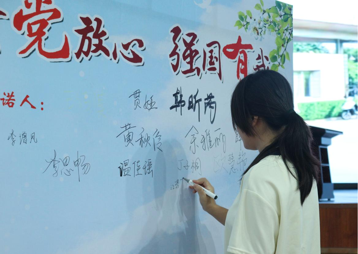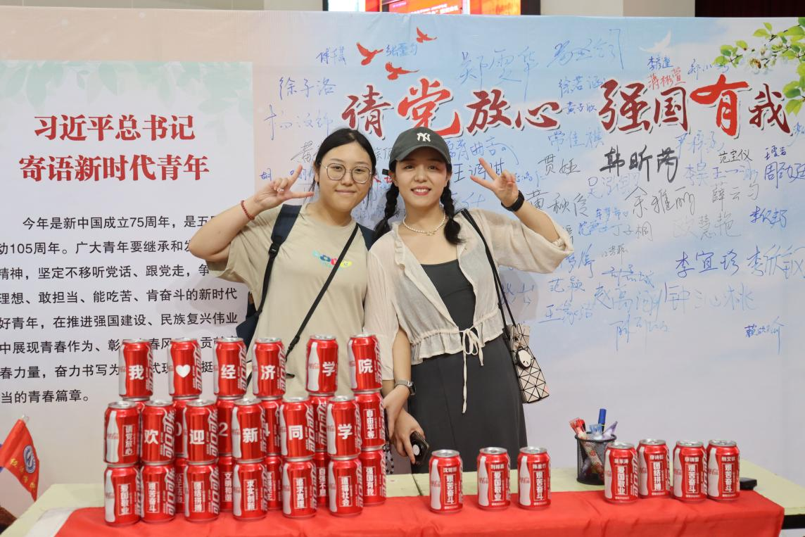 据悉,冰球突破mg正规官网准备了以庆祝中华人民共和国成立七十五周年为主题的青春承诺墙,新生们纷纷在墙上留下自己的名字,为祖国献上诚挚的祝福,并由工作人员定格下这一温馨又特别的一幕。