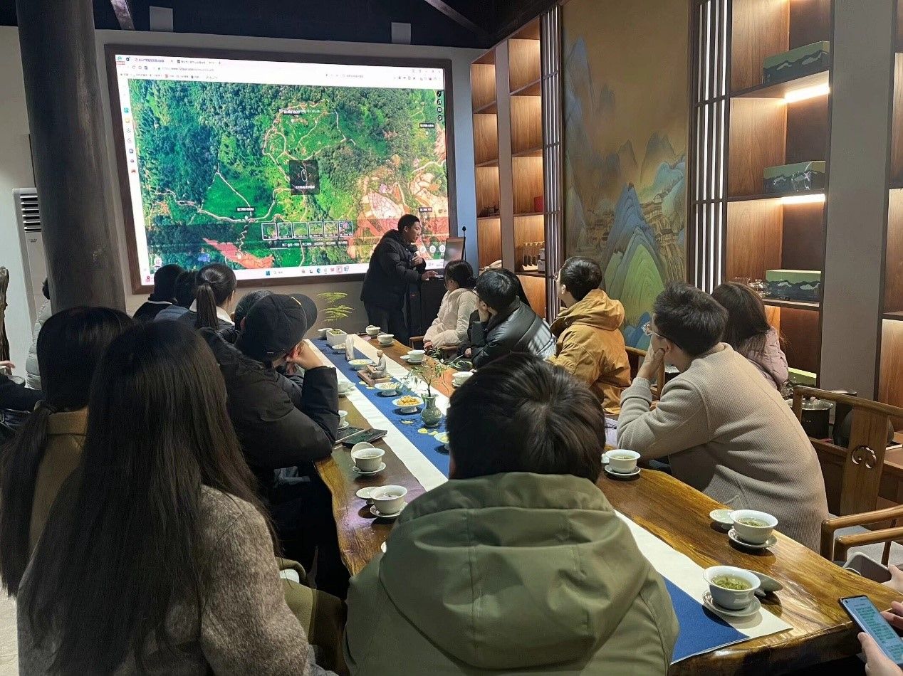 1月14日至16日,由学院副院长吴平教授作为负责人的雅安市茶产业三产融合发展模式和机制研究项目组前往雅安市名山区、雨城区和荥经县开展大规模实地调研。项目组成员、学院刘艳教授、申云教授、张华泉副教授、张昕蔚博士、体育学院黄国园副教授及硕士研究生一行18人参加调研。雨城区农业农村局茶办主任李刚,名山区茶叶产业发展中心副主任刘宇、文化广播电视体育和旅游局蒙管委副主任严子明、旅游发展服务中心副主任钟敏、红星镇骑龙村党支部书记詹肇杰等协助调研。