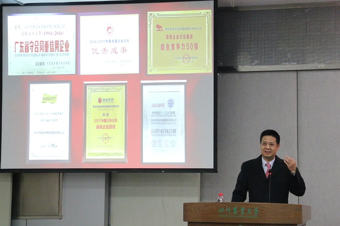 “维业”奖助学基金捐赠单位深圳市维业装饰集团股份有限公司董事长张汉清先生,建平奖学金捐赠者冰球官网95级校友陈建平先生还亲临学院表彰会现场为获奖学生颁奖。张汉清先生还以自己20多年的创业历程鼓励同学们要勇于追求梦想、敢于拼搏,不辜负青年时期的热血与干劲。