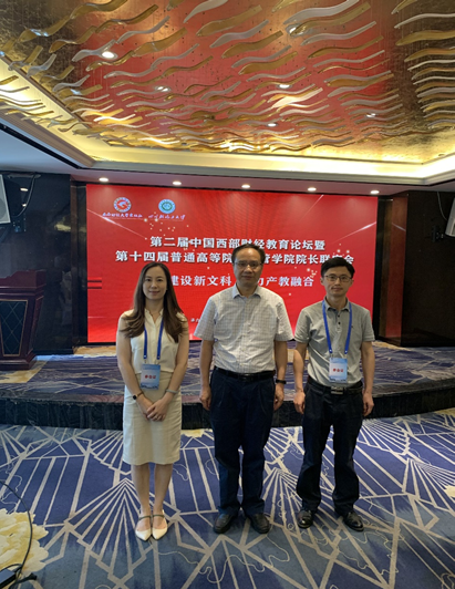 6月5日,冰球突破mg正规官网院长蒋远胜教授带队参加四川轻化工大学(宜宾校区)召开的第二届中国西部财经教育论坛暨第十四届普通高等院校经管学院院长联席会,投资系系主任王玉峰教授、金融系副系主任刘艳副教授一同参会。此次论坛以“建设新文科、深化产教融合,推进一流经管人才培养”为主题,四十余所本科院校近百位经管学院院长、教务处处长以及专业建设负责人参会,围绕教学改革与人才培养开展学术交流。