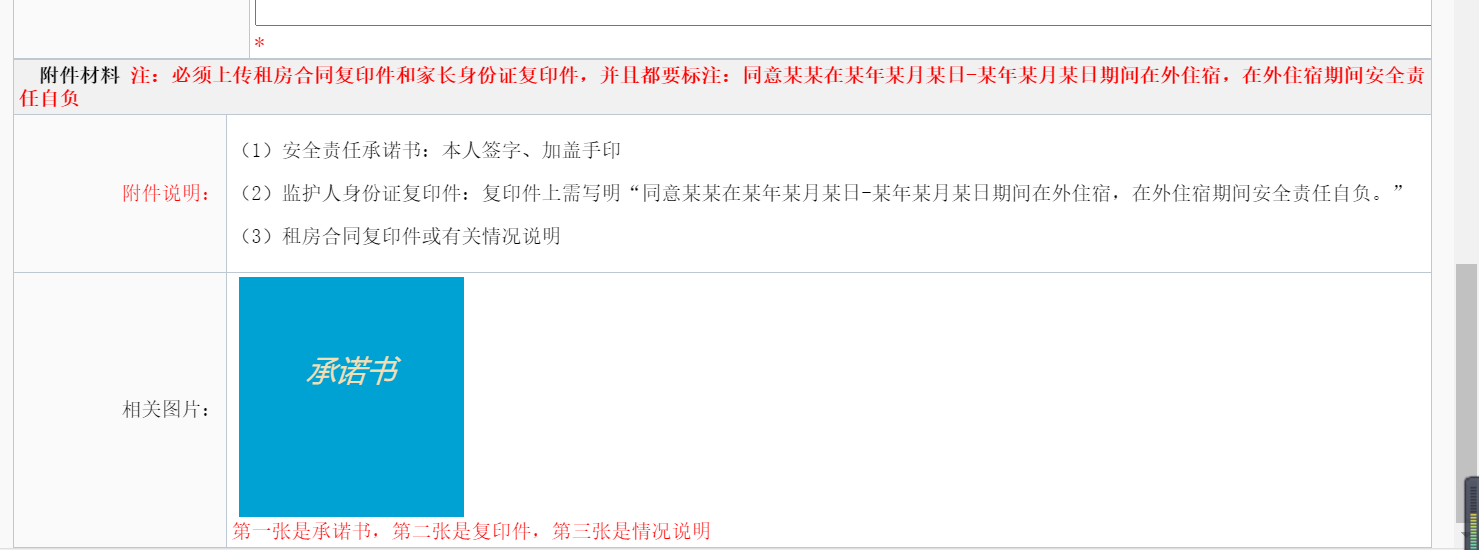 3.每次申请外宿时间段仅限一学期,一学期后,若还需在外居住应重新申请。