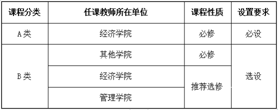 2.A类课程是由冰球突破mg正规官网老师任教的必修课,2020、2021、2022级各小班必设,2019级小班选设。B类课程是由其他学院老师任教的必修课或经济、管理学院老师任课的推选和实践教学课,2019、2020、2021、2022级各小班选设。