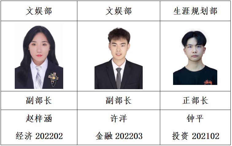 经个人申请,学院资格审查,面试答辩,拟任以下同学为冰球官网第九届学生团体联合会主要学生干部,试用期3个月,现予公示如下: