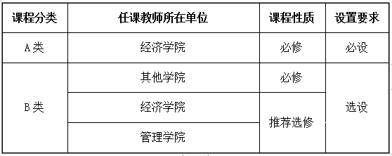 2.A类课程是由冰球突破mg正规官网老师任教的必修课,2021、2022、2023级各小班必设,2020级小班选设。B类课程是由其他学院老师任教的必修课或经济、管理学院老师任课的推选和实践教学课,2020、2021、2022、2023级各小班选设。