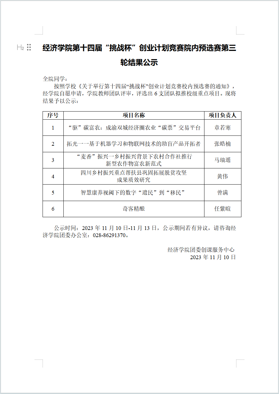 冰球突破mg正规官网第十四届“挑战杯”创业计划竞赛院内预选赛第三轮结果公示