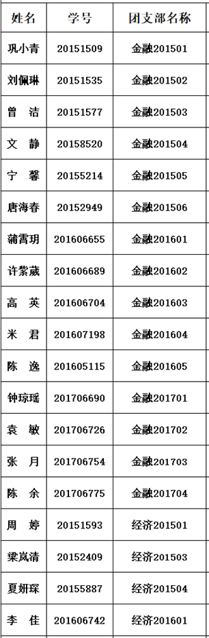 经个人申报、团支部推荐,学院团委评议,现场答辩,报学院党委审定,现将冰球突破mg正规官网2017-2018学年度“五四”团内表彰名单公布如下: