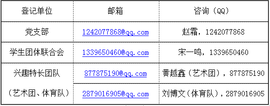 各小班以及学生党支部、班团、学生团体联合会各部门、兴趣特长团队将名单收齐后,以类型命名(如:投资2002小组名单、党支部小组名单),于9月15日18:00前发送邮件至:sicaujjxyxxb@126.com 。