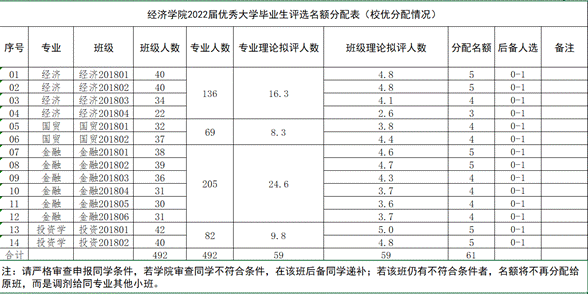 学院共计64个校级优秀大学毕业生名额(60个分配指标+5个学院2021届就业工作目标奖倾斜指标),20个省级优秀大学毕业名额。目前学院确定分配指标61个,剩余3个指标后备人选中产生(指标分配情况见下图)。省级优秀大学毕业生原则上从校级优秀大学毕业生中产生,符合省优大条件的且班级推荐排序在前的优先考虑。