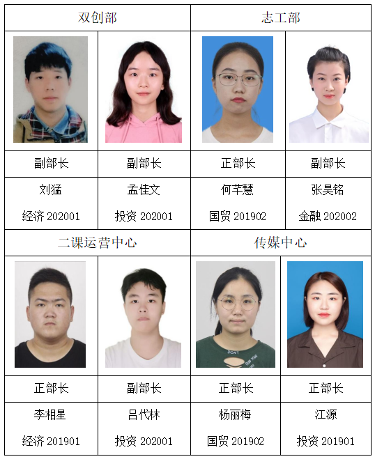 增补姜秋睿任团委办公室正部长,增补钟若希任组织部正部长,增补叶龙飞任学习部正部长。