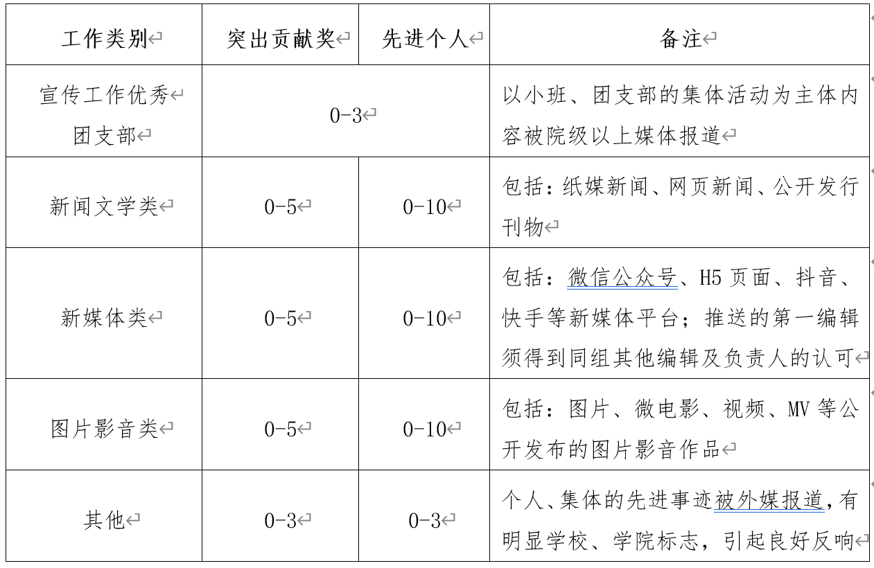 说明:第一作者(编辑)须为冰球官网在读学生;同一作品主体不能同时参评多个类别;评选标准以原创度为主要参考;拟表彰“宣传工作优秀团支部”0-3个,“宣传工作突出贡献奖”0-18名,“宣传工作先进个人”0-33名。
