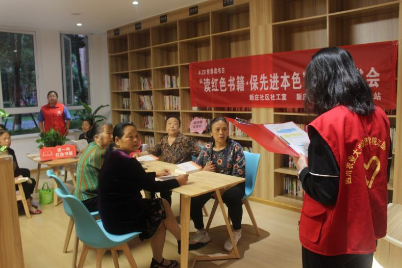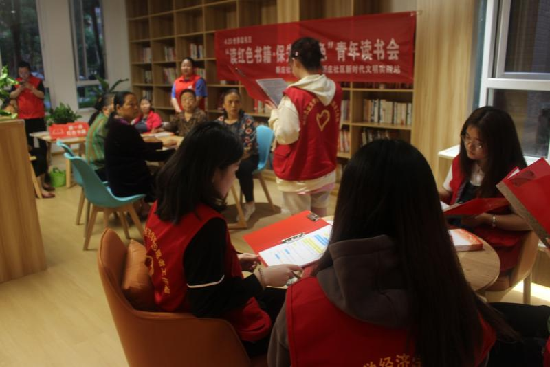 2023年4月20日早上,四川农业大学冰球突破mg正规官网青年志愿者协会与永宁街道新时代文明实践所以及新庄社区联合举办的党的二十代精神主题宣讲活动——“以青春之名,献礼二十大”读书会暨“读红色书籍·保先进本色”青年读书会在永宁街道新时代文明实践所启动。本次活动冰球突破mg正规官网青年志愿者协会共有六位志愿者参与到组织中,共有超20名社区居民参与到读书会中。