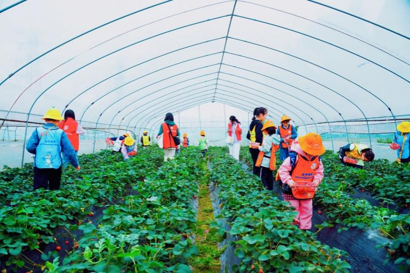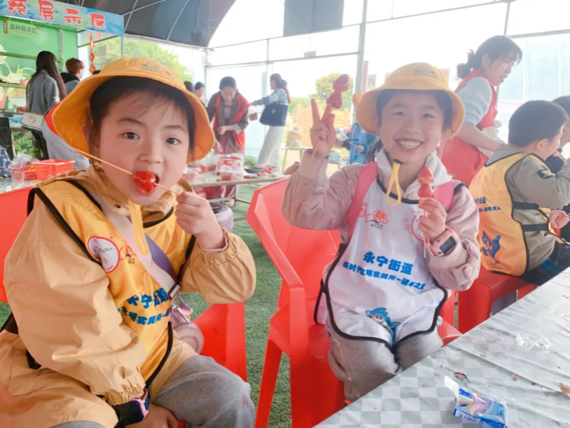当天,在志愿者指导下,小朋友们学习了草莓制品的制作方法并加以实践,制作了草莓酱、草莓糖葫芦等,本次活动以农业科技为重点,打造丰收季研学之旅,激发乡村活力,引导青少年亲近自,了解现代农业发展,提高青少年研学的教育性和实践性,促进青少年研学与乡村振兴有机融合。