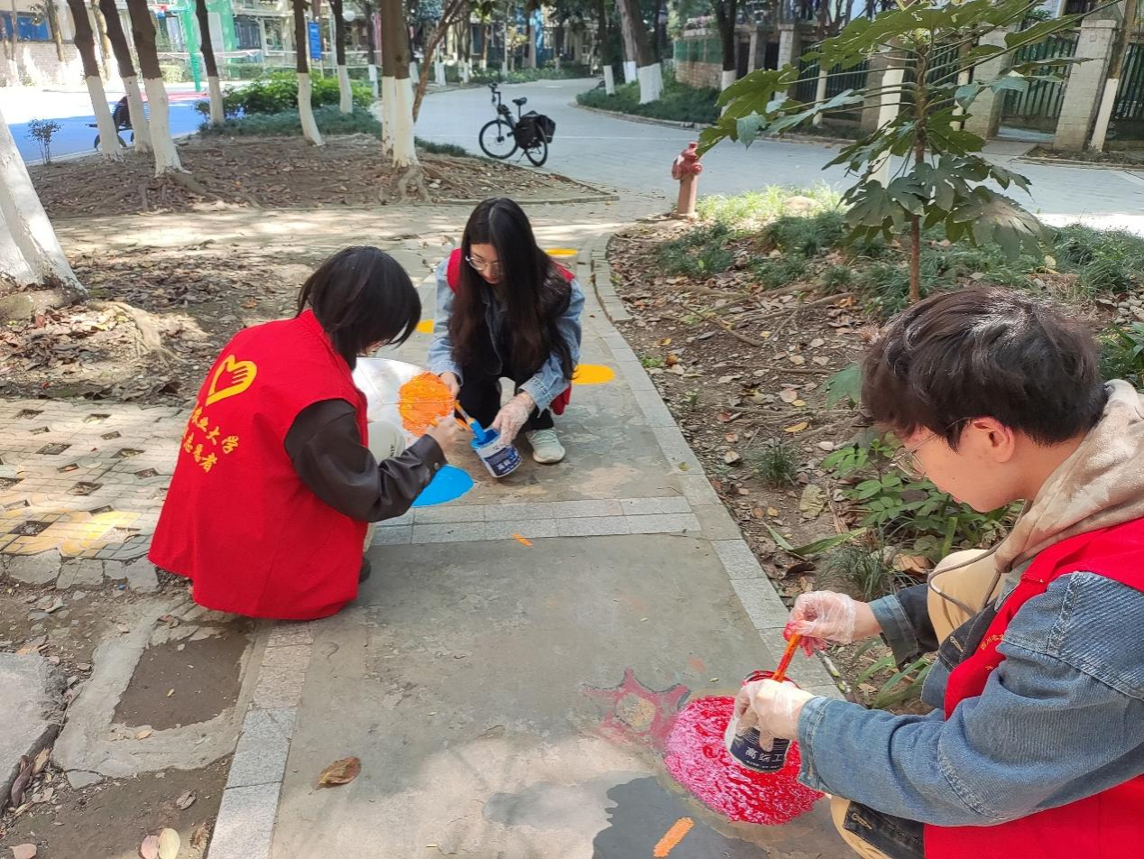 为了营造美丽,和谐,幸福的社区氛围,在响应“创建美丽城市”的号召下。3月19日,冰球突破mg正规官网冰球突破mg正规官网团委志工部组织的志愿者们来到森宇音乐花园,和社区携手开展了油漆画画服务活动。志愿者同学们和社区工作人员积极合作,一同在地上创造出了美丽的图画,同时也调动了社区其他居民的广泛参与。