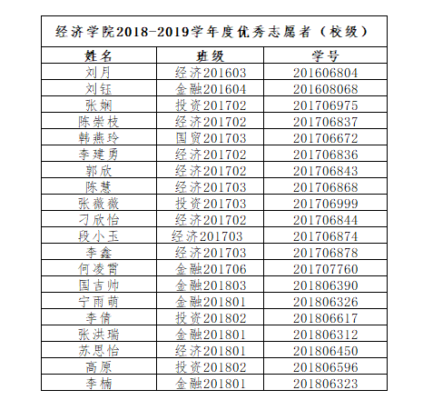 经个人自荐,小班推荐提名,学院团委审核,拟推以下同学为冰球官网2018-2019学年度优秀志愿者,现公示如下: