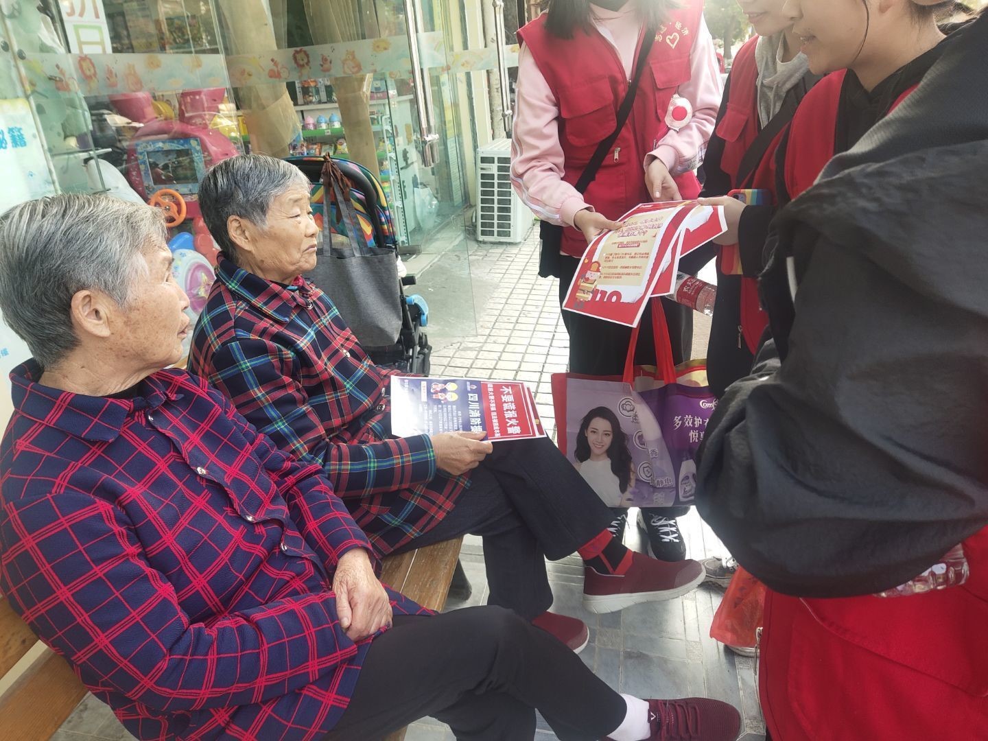 除了进入社区宣传,我们还对商铺进行了走访宣传,给商家讲解相关的消防知识,开展了有奖问答。商家也很积极配合我们的宣传没有表现出不耐烦。在最后收尾阶段,甚至还有几个老年人主动问我们相关的知识。大家都很热情地参与。