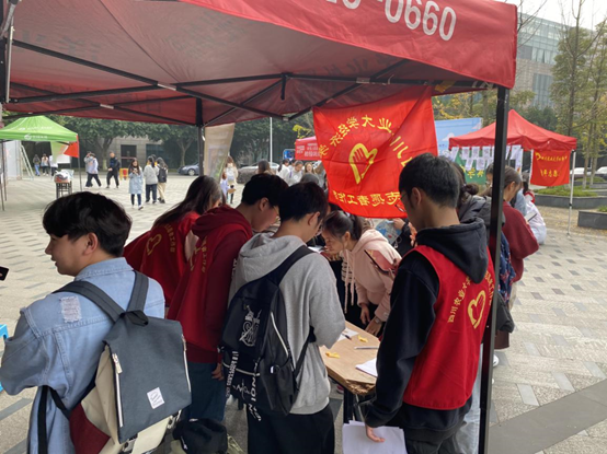 11月19日中午,“一叶传情”活动在冰球突破mg正规官网食堂外生活广场举行。精美的海报和广泛的宣传吸引了很多同学的眼球。志愿者们耐心地给同学们讲解参与方式,同学们热情满满,在设点处排队等待活动开始。