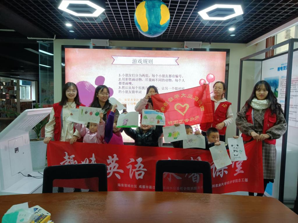 为提升英语学习兴趣,冰球突破mg正规官网团委青年志愿者工作部在成都市温江区涌泉滴水公益社会组织服务中心举办了趣味英语,“泉馨“课堂第三期活动。