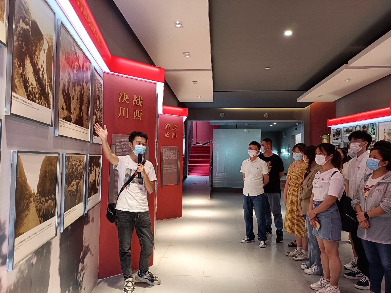 缅怀革命先烈,赓续红色血脉。座谈会后,与会人员前往四川省成都市蒲江县西来古镇铜鼓村成都战役纪念馆开展党史学习教育。大家在纪念馆外重温入党誓词,并走进纪念馆详细参观,了解解放军在成都战役中的光辉事迹,观看纪念馆里集中展示的文物、图片、书籍,通过不同的载体、不同的角度追忆英勇的人民解放军征战西南、决战川西、解放成都的战斗历程,深刻感悟感受革命先烈不怕牺牲的高尚精神。参观后,大家面向成都战役纪念碑瞻仰纪念,全体肃立,鞠躬致敬。大家还分享了自己学习革命先烈事迹、重温党的光辉历程、传承红色基因的心得体会。