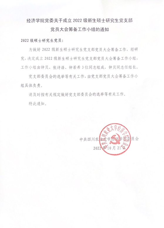 冰球突破mg正规官网党委关于成立2022级新生硕士研究生党支部党员大会筹备工作小组的通知