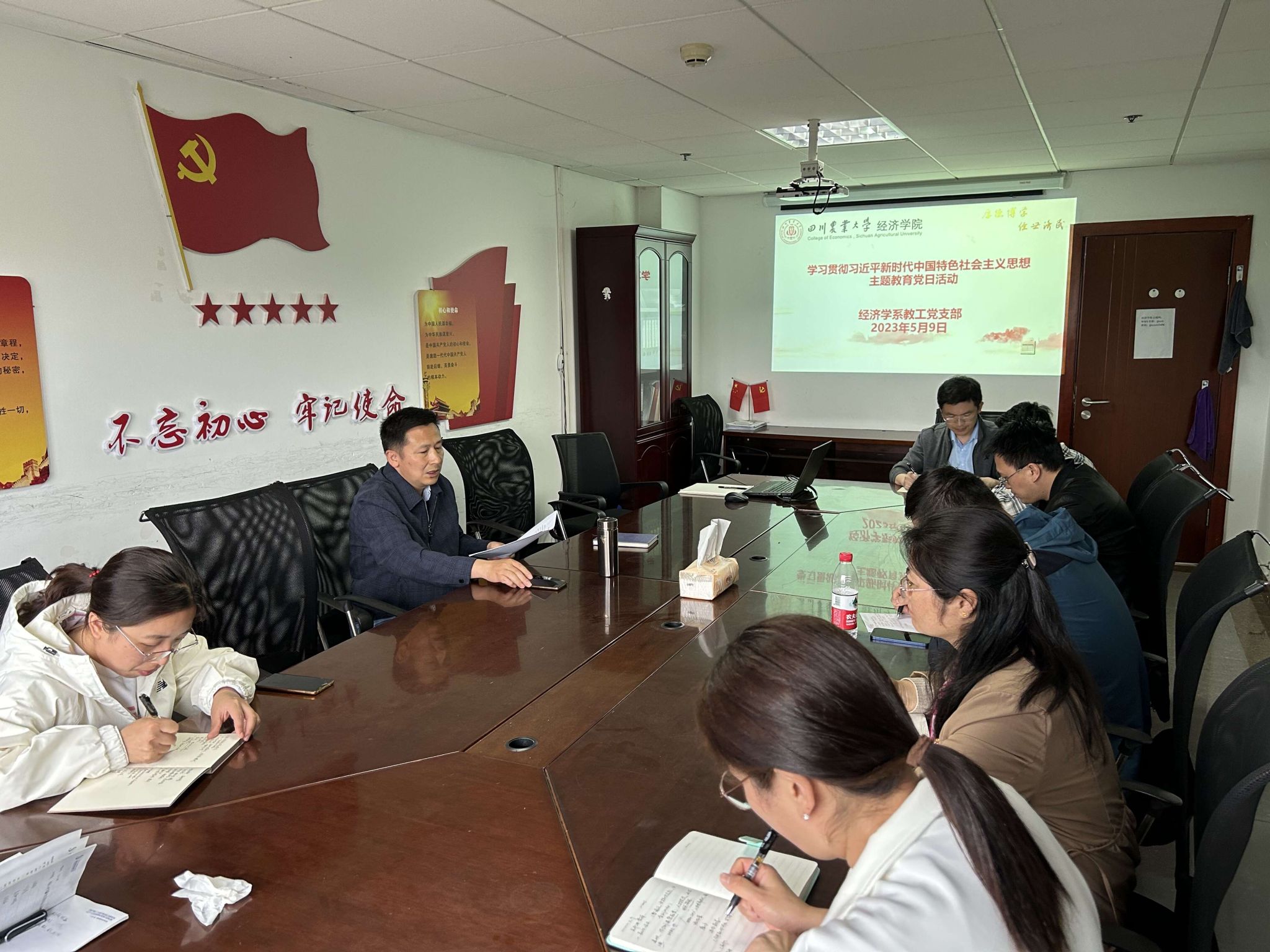 为进一步推动学习贯彻习近平新时代中国特色社会主义思想持续走深、走心、走实,2023年5月9日,经济学系教工党支部在1教425开展“学习贯彻习近平新时代中国特色社会主义思想主题教育”专题党日活动。学院党委委员、副院长吴平为支部全体党员讲授了一场生动的党课。