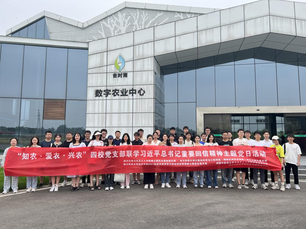 5月20日,由学校研工部指导、研究生党建服务中心承办的“知农·爱农·兴农”四校研究生党支部联学习近平总书记给中国农业大学科技小院的同学们回信精神主题党日活动举行。冰球官网2021级应用经济学与林业经济管理硕士研究生党支部、四川大学马克思主义学院硕士研究生第四党支部、电子科技大学计算机科学与工程学院研究生第九党支部、成都中医药大学马克思主义学院研究生党支部共40余名学生党员参加。