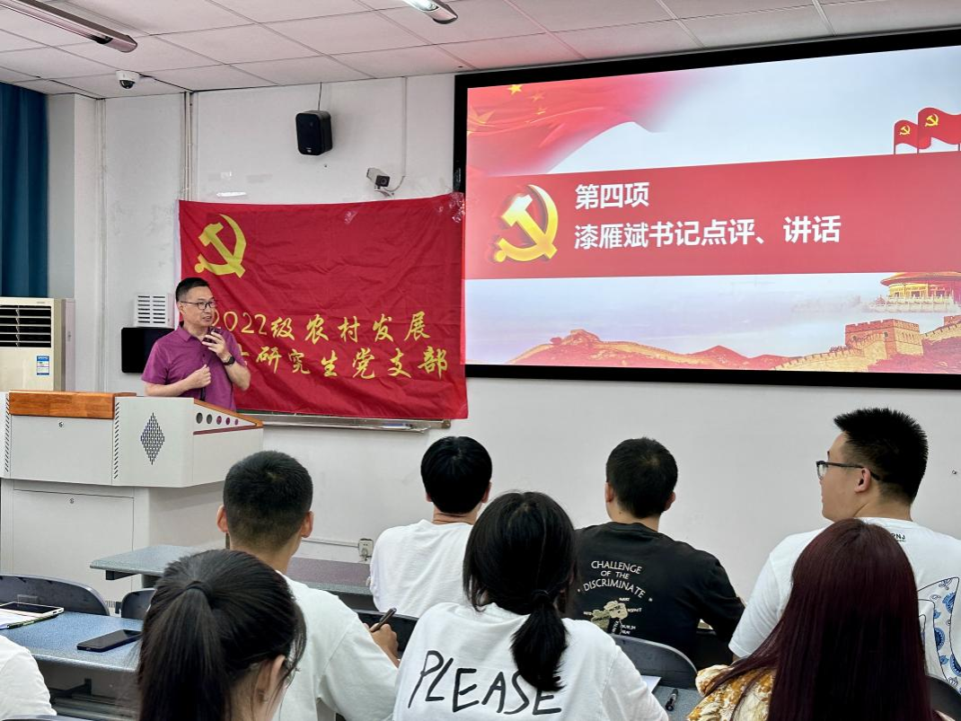 按照党中央要求,学校学院党委统一部署,9月18日,2022级农村发展硕士研究生党支部召开学习贯彻习近平新时代中国特色社会主义思想主题教育专题组织生活会。学院党委书记漆雁斌莅临指导,党支部全体党员参与,会议由党支部书记戴绍颖主持。