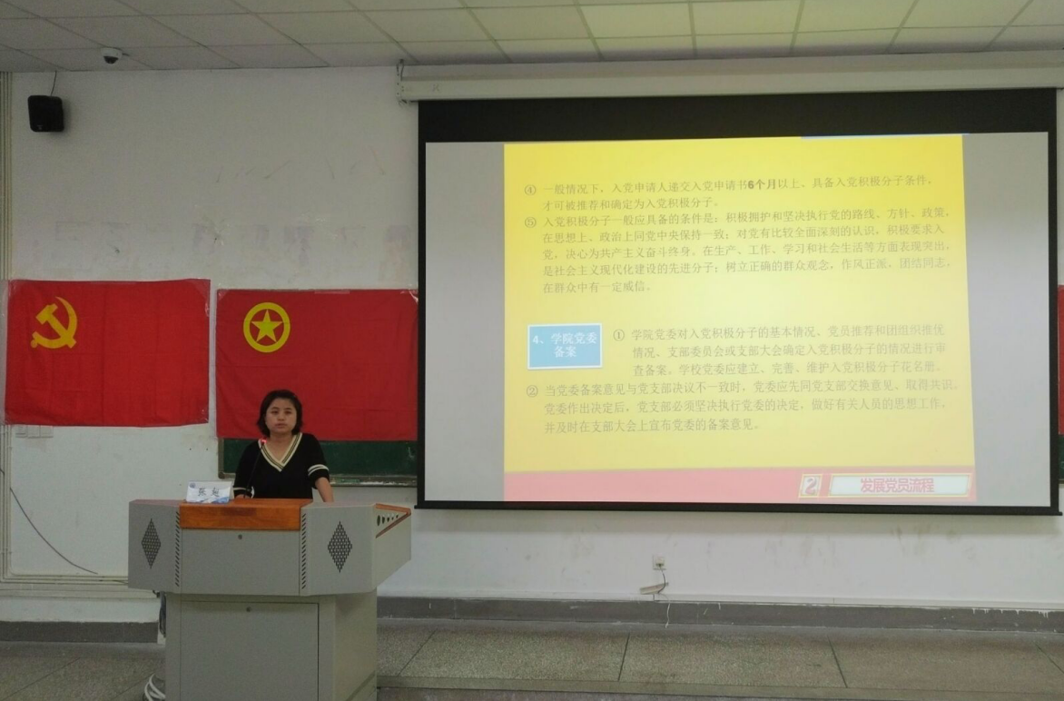 党委副书记、纪委书记张翅作《入党的基本程序》专题授课。她详细地讲解了从提交入党申请书、接受党组织的考察和培养到成为发展对象和发展入党等入党程序中的关键步骤,并强调入党是一个严肃而庄重的决定,需要申请人具备坚定的理想信念、高尚的道德品质和过硬的综合素养。