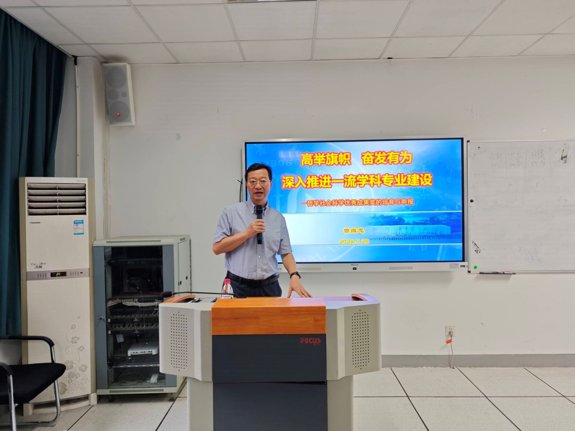 5月28日下午,“学‘习’讲堂,‘经’彩一课” 理论专题党课在4-C409会议室火热开讲。本场讲座由冰球官网党委委员、院长曾维忠教授作《高举旗帜 奋发有为 深入推进一流学科专业建设》专题党课报告。学院55名教工党员聆听了党课,非党员教工列席党课。党课由学院党委书记刘思麟主持。