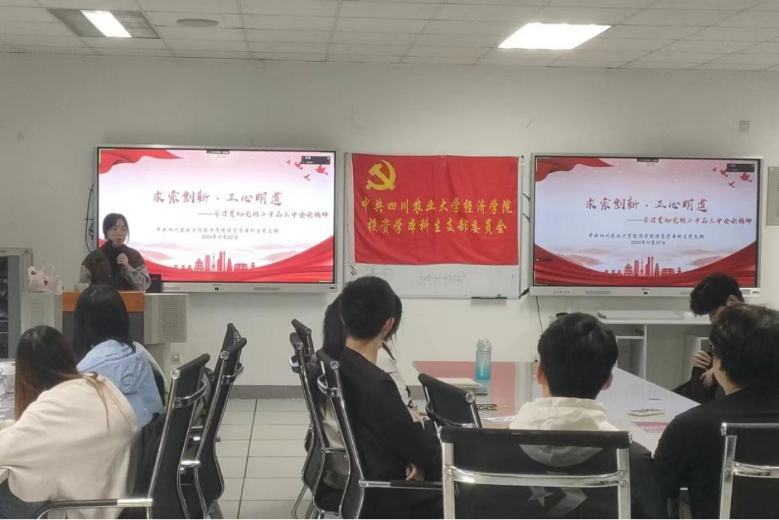 2023级应用经济学硕士研究生党支部于10月8日在4C609教室开展“学习贯彻党的二十届三中全会精神”主题党日活动。