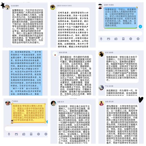 本次会议由支部书记郝奥亚同志带领支部成员共同学习了习近平总书记关于教育的重要论述,集中学习后,党员同志们感触良多,在QQ群进行交流并展开讨论,大家分享自己在学习过程中最打动内心的话语,纷纷发表感想与收获。