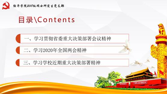 大会第二项,学习2020年全国两会精神。了解李克强总理发表的政府工作报告,从政府工作报告中,思考2020年中国发展走向。