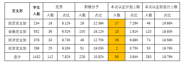 学院党委办公室根据各党支部现有学生人数、党员人数、入党积极分子人数,确定本次入党积极分子认定计划。详细如下:
