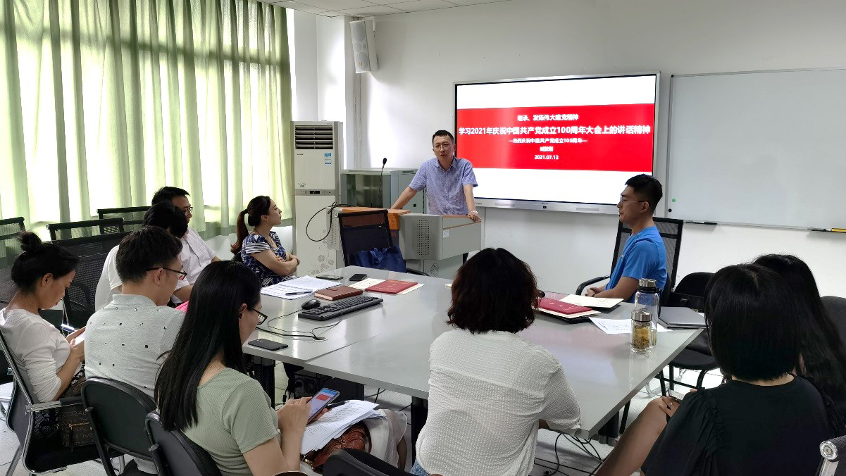 7月13日下午,金融学系教工党支部在4教C409室专题学习习近平总书记在庆祝中国共产党成立100周年大会上的重要讲话精神。会议由金融学系教工党支部书记、系主任臧敦刚主持,学院党委副书记、纪委书记何仁辉以普通党员身份与金融学系党支部全体党员、民主党派和全系教师一道参加。
