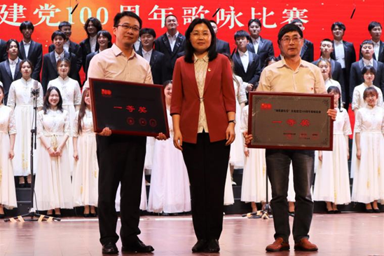 气势磅礴的合唱、精彩纷呈的表演赢得了在场老师同学的阵阵掌声,冰球官网最终斩获本次“颂歌献给党”庆祝建党一百周年歌咏比赛一等奖,党委副书记、纪委书记何仁辉老师代表学院上台接受表彰。