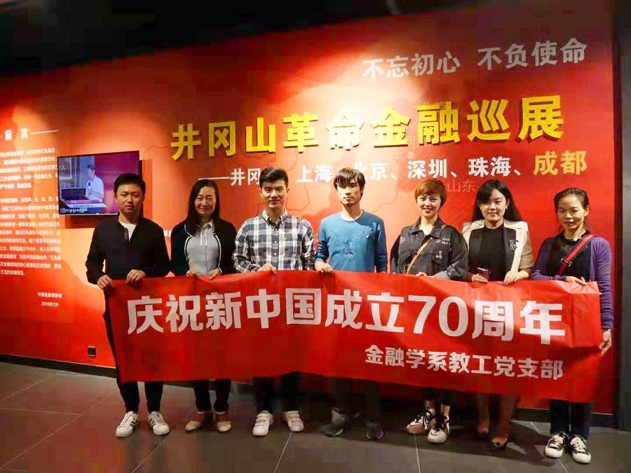 金融学系党支部积极发挥党建引领作用,以金融学、农村金融学等课程为示范课,探索课程思政和专业思政,将爱国精神融入课堂、融入育人,讲好中国金融故事。2016年,时任金融学系党支部书记、系主任的刘艳副教授荣获学校2016年度本科课堂教学质量一等奖。刘艳极为重视课程思政建设,在课堂讲授过程中,善于动员学生思考我国政府为人民服务的实例,在深刻认识财政学原理的同时激发学生的爱国热情。在现任党支部书记、系主任臧敦刚副教授的带领下,金融学系党支部于2018年获评优秀党支部。党支部通过丰富的党组织生活,在学习理论的同时,加强对祖国、对党的路线方针的认同感。2019年9月,党支部组织全体党员到天府四川金融博物馆,参与该博物馆正在举办的“不忘初心:井冈山革命金融”主题活动。参观中,展馆多元化的展示手段和讲解,使支部全体党员直观地感受到了全球钱币的发展历史和金融领域对国民经济发展的重要作用,尤其是新中国成立70年来,中国金融的迅速发展在人民生活中发挥的重要作用;了解到了红色基因与金融安全、普惠金融、金融科技等方面的承继关系;认识到了继承红色基因就是要向革命先烈们学习,发扬光大“井冈山精神”。