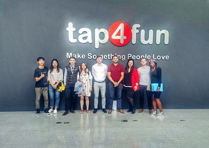 交换生参观了国际知名移动网络游戏软件公司tap4fun(成都尼毕鲁科技股份有限公司),公司成立于2008年3月,主营业务为移动网络游戏的研发、运营及移动网络游戏领域的投资。公司以策略游戏为基础,开展面向全球的移动游戏研发和运营。公司十分欢迎交换生们加入实习,交换生们也被公司的运营模式和办公氛围深深吸引。