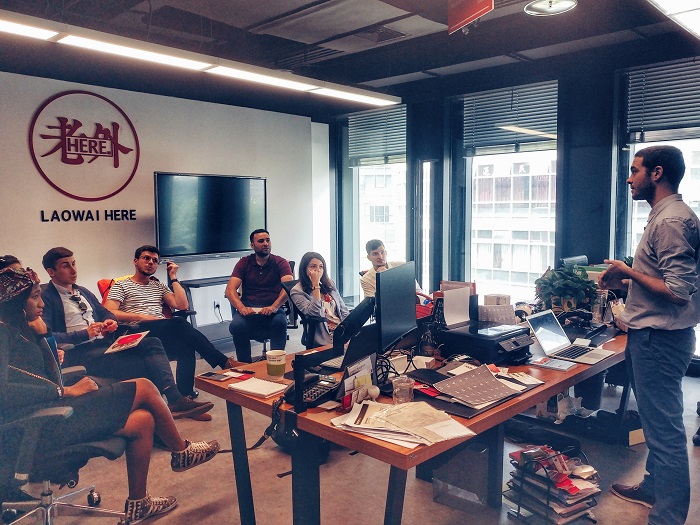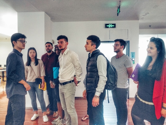 专场活动结束后,交换生一行来到位于大源国际的老外Here。老外Here公司由来自四国的国际化团队创立,旨在促进跨国文化交流,促进国际文化、人才和商业资源的流动,为在蓉老外提供生活和工作帮助。公司负责人详细介绍了公司的业务范围和企业文化,并带领交换生参观了办公环境。
