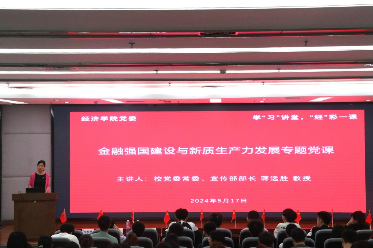 5月17日下午,学院“学‘习’讲堂,‘经’彩一课”理论专题党课第一季在图书馆报告厅开讲校党委常委、宣传部部长、马克思主义学院党委书记蒋远胜教授受邀作为第一讲嘉宾为全院260名师生党员、入党积极分子作题为《习近平经济思想之金融强国建设解读》的精彩讲解,报告会由学院党委书记刘思麟主持。